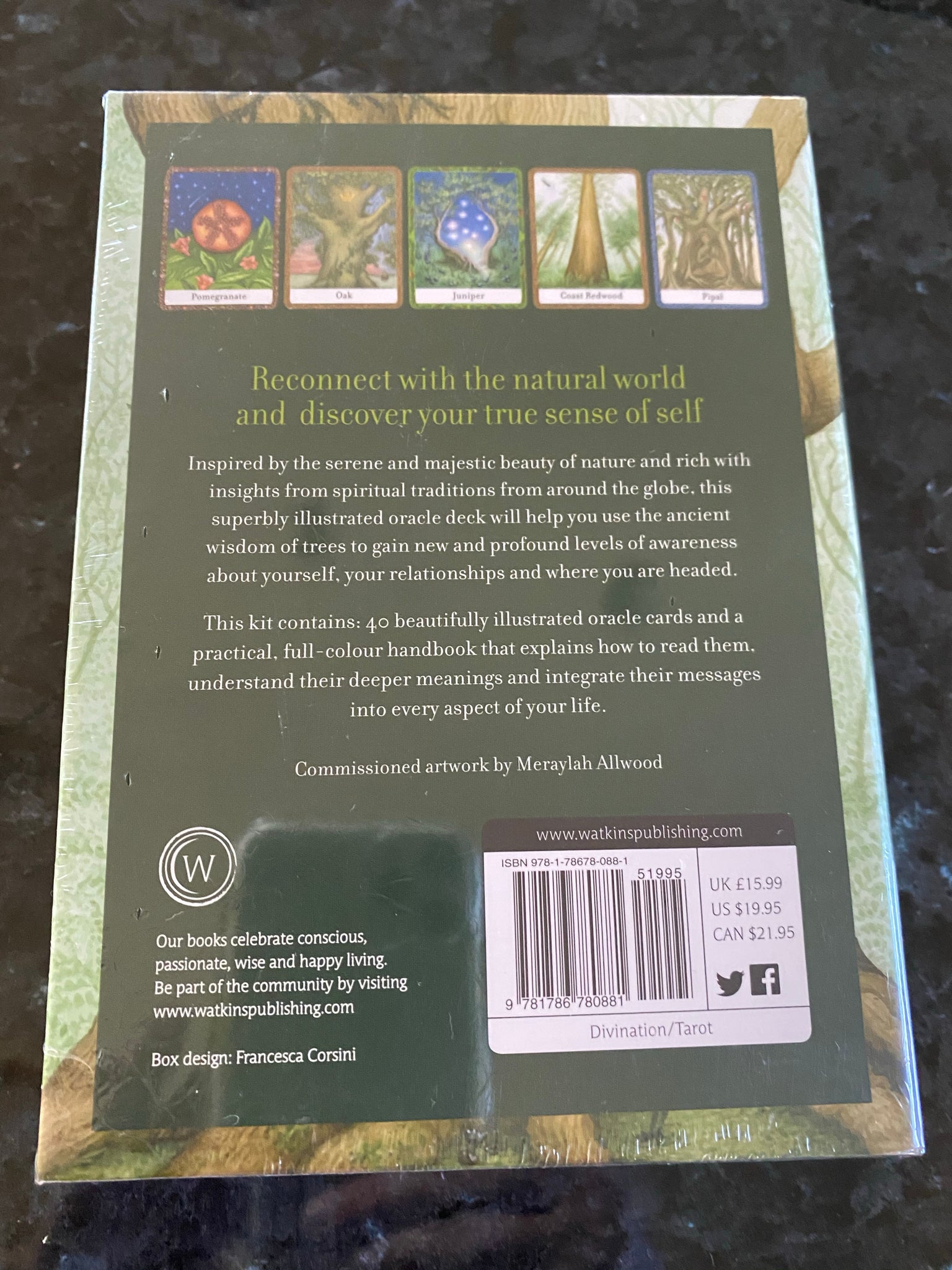 Inspired by the serene and majestic beauty of nature and rich with insights from spiritual traditions from around the globe, this superbly illustrated deck and accompanying guide will help you gain new and profound levels of awareness about yourself, your relationships and where you are headed, from the wisdom of trees.