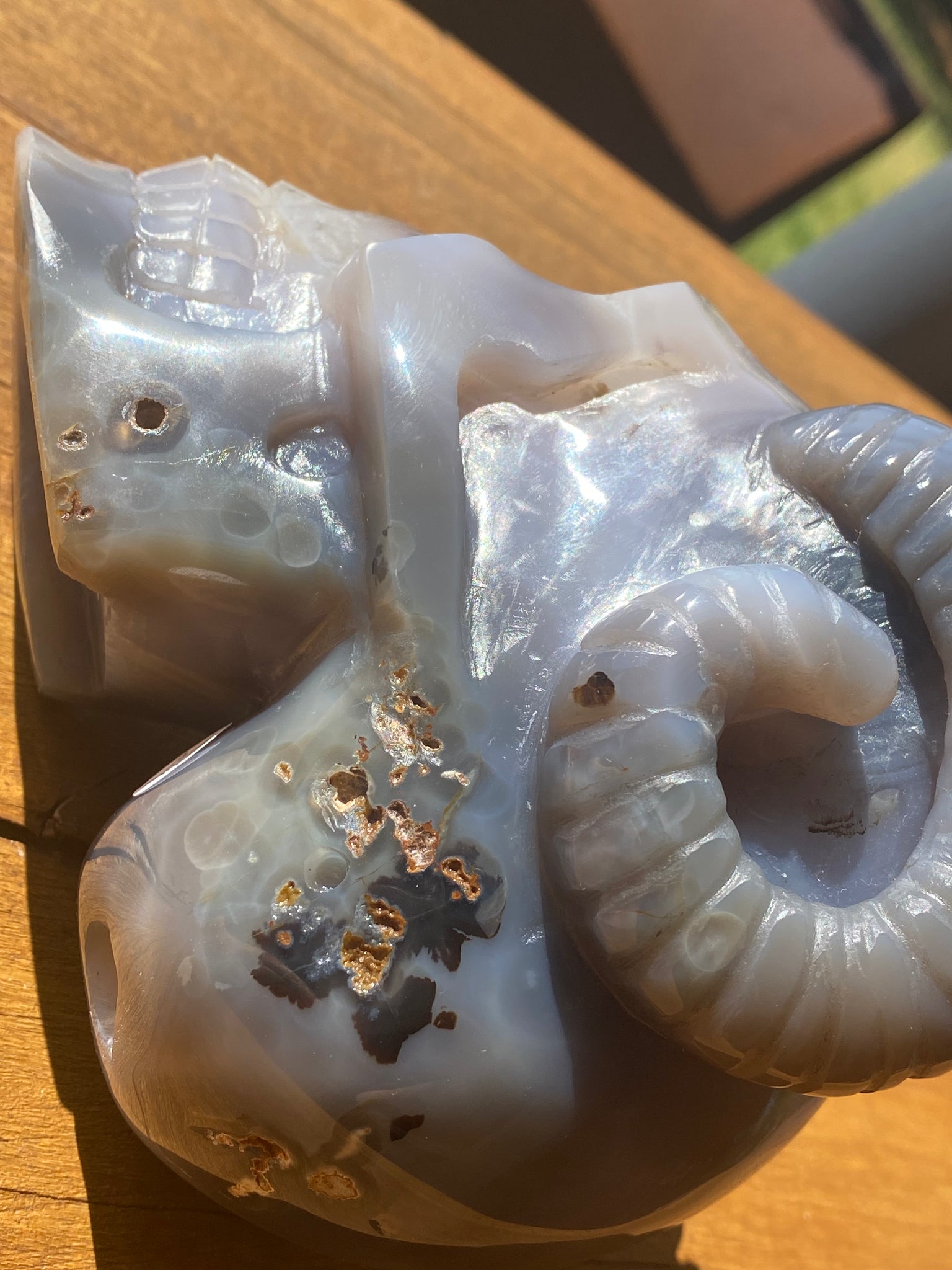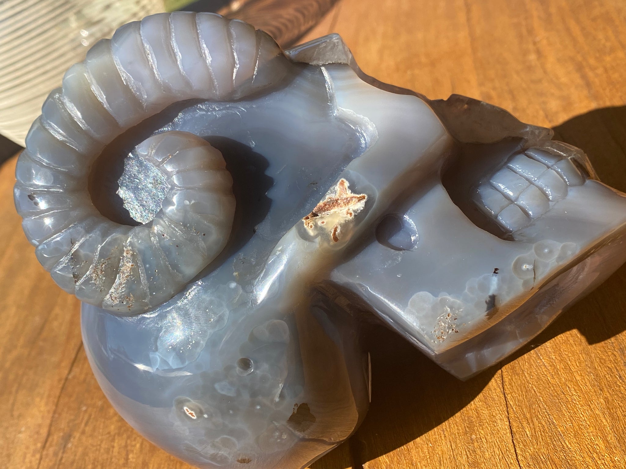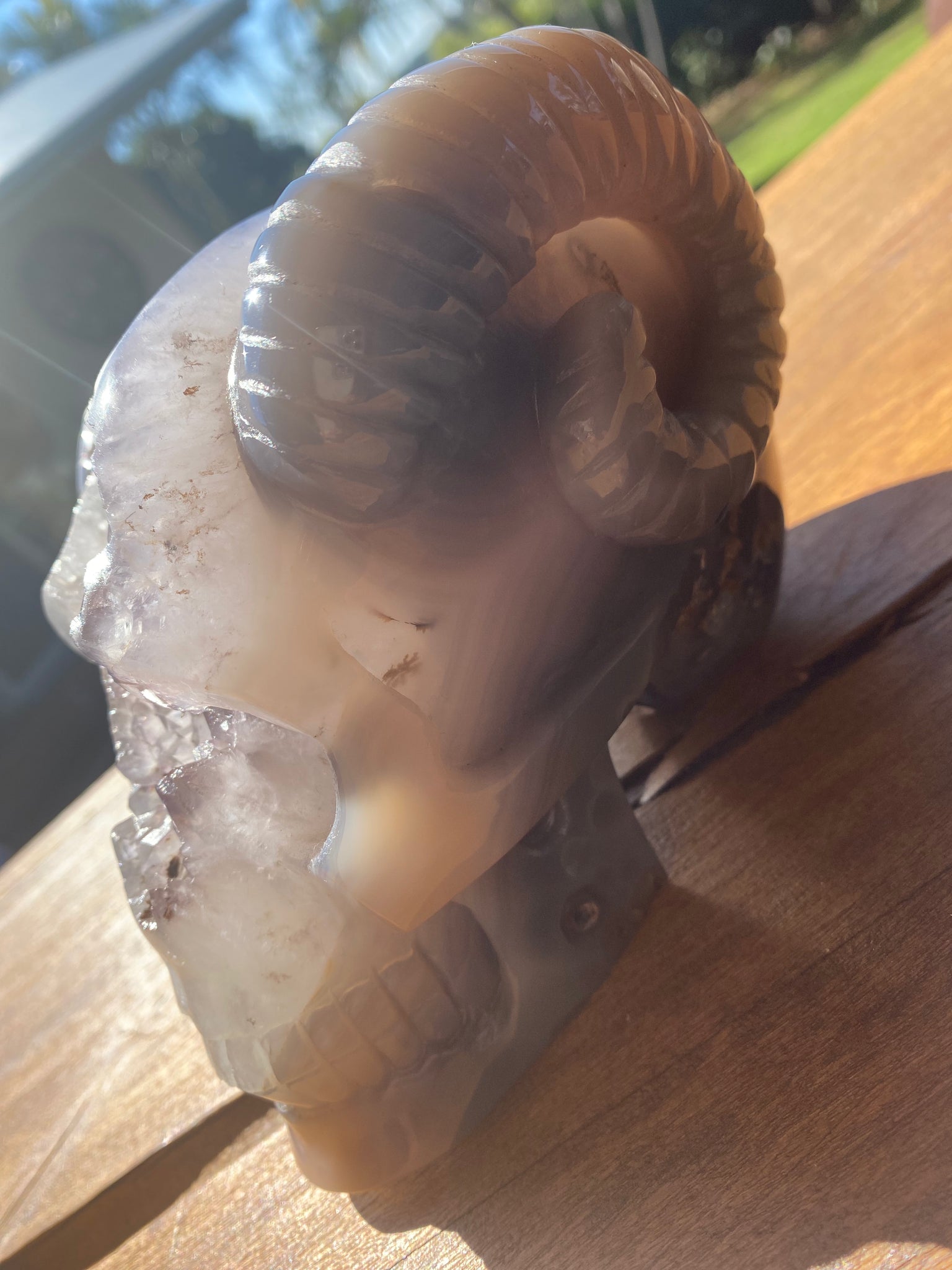 This stunningly handsome being weighs over 2 kg in weight (2118.7) and measures approximately 30cm from the base of the skull to the chin x 14.5 cm wide x 13 cm High.