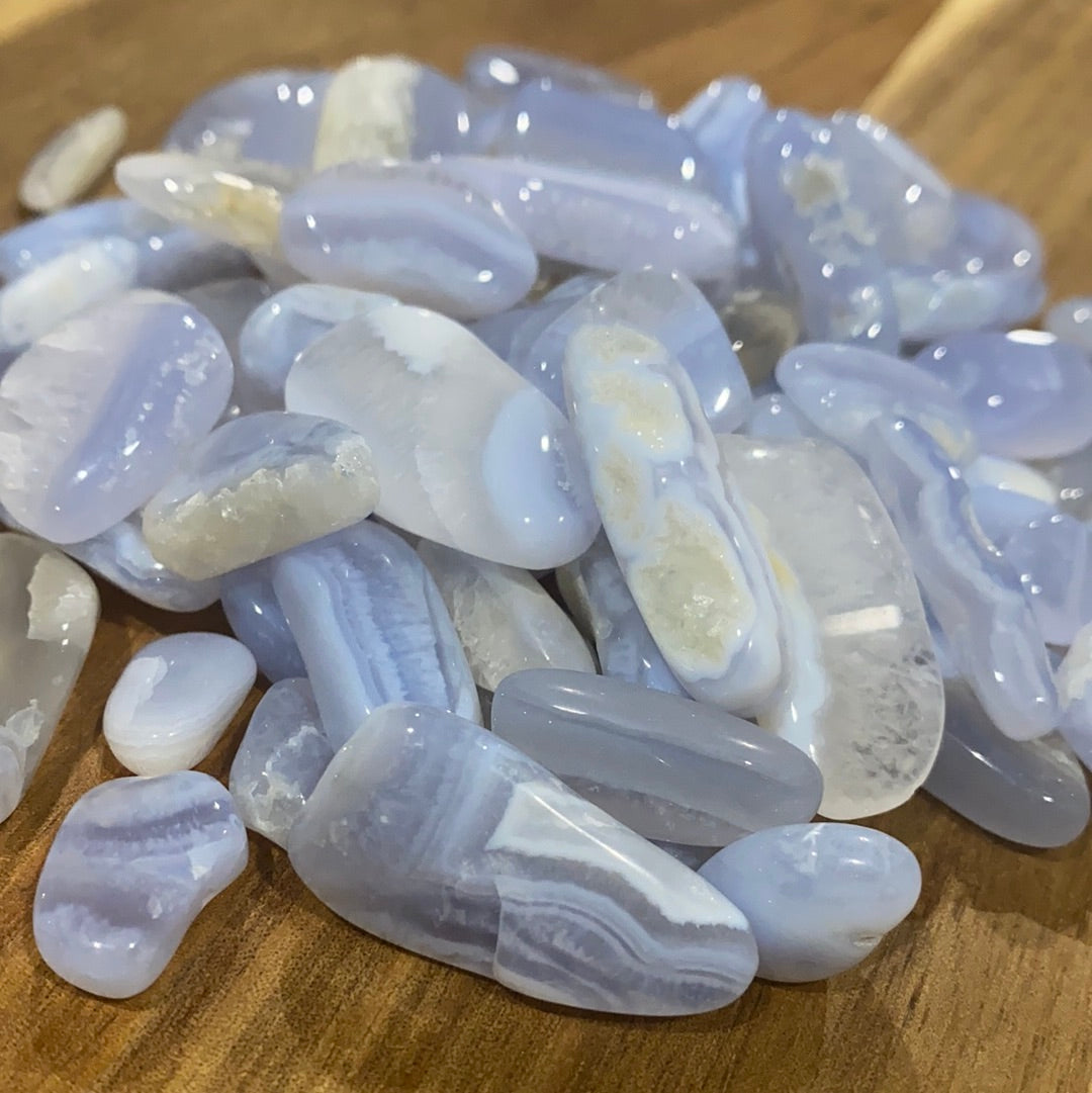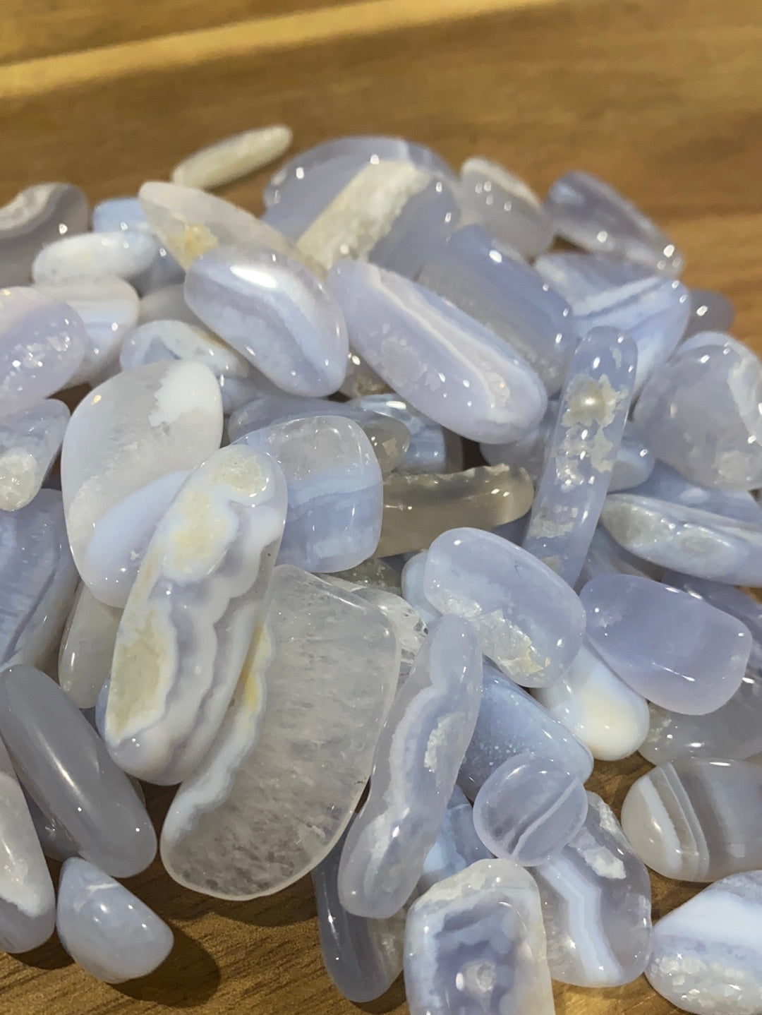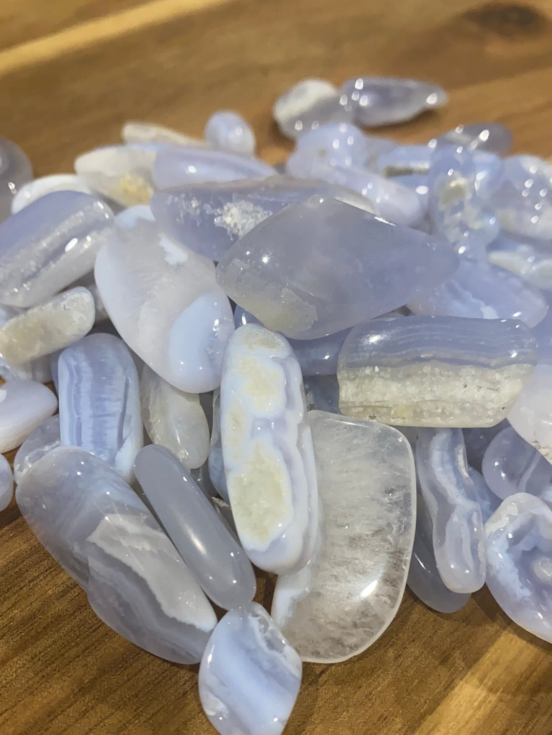 Blue Lace Agate belongs in city 8 on The Tree of Life and is a power crystal that highly influences our communication and the way we calmly, intellectually are able to express ourselves.