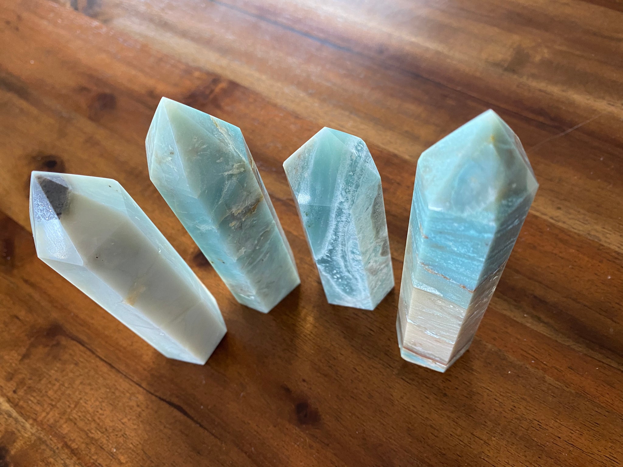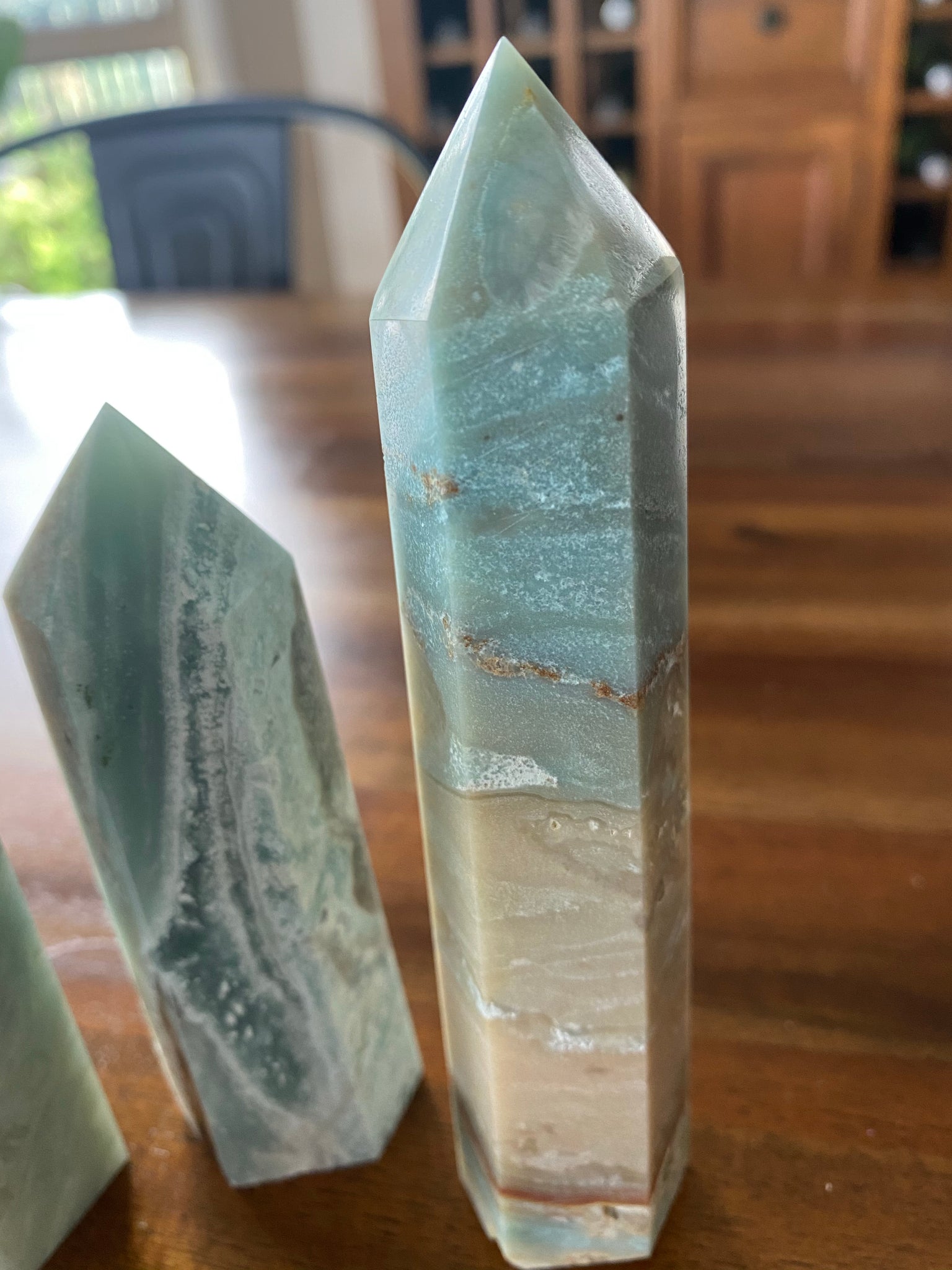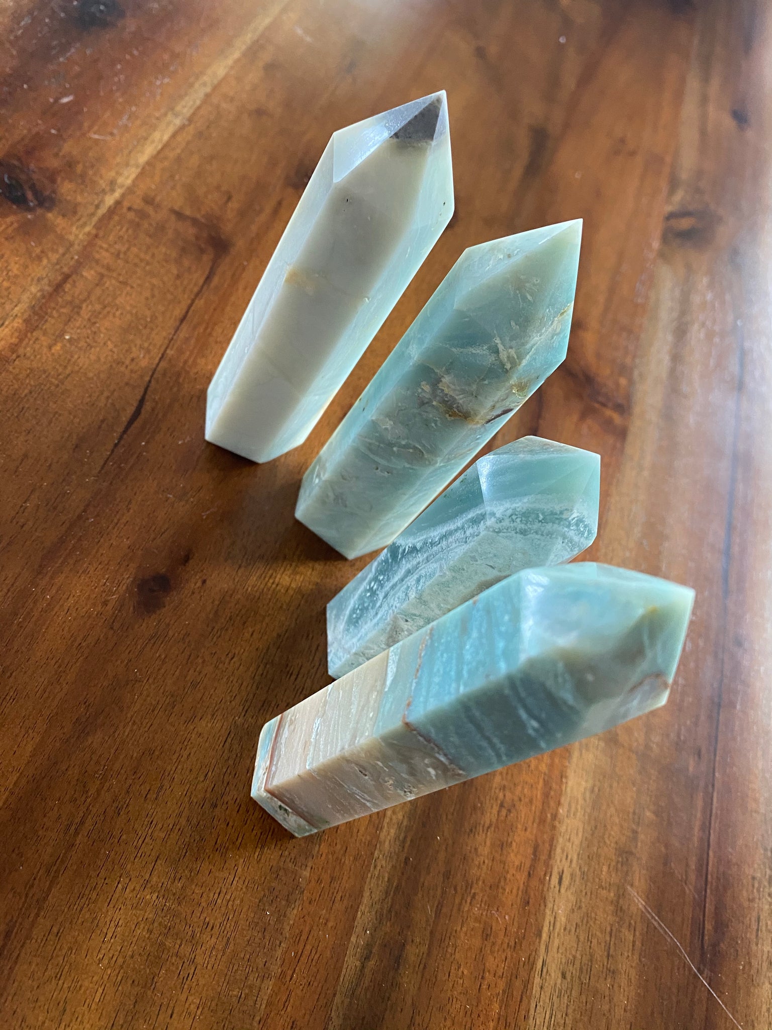 Stunning & Essential this Caribbean Calcite stands at approximately 12.5cm tall x 3.5cm wide , some a little taller or shorter, weighing between 161 to 185 grams each.