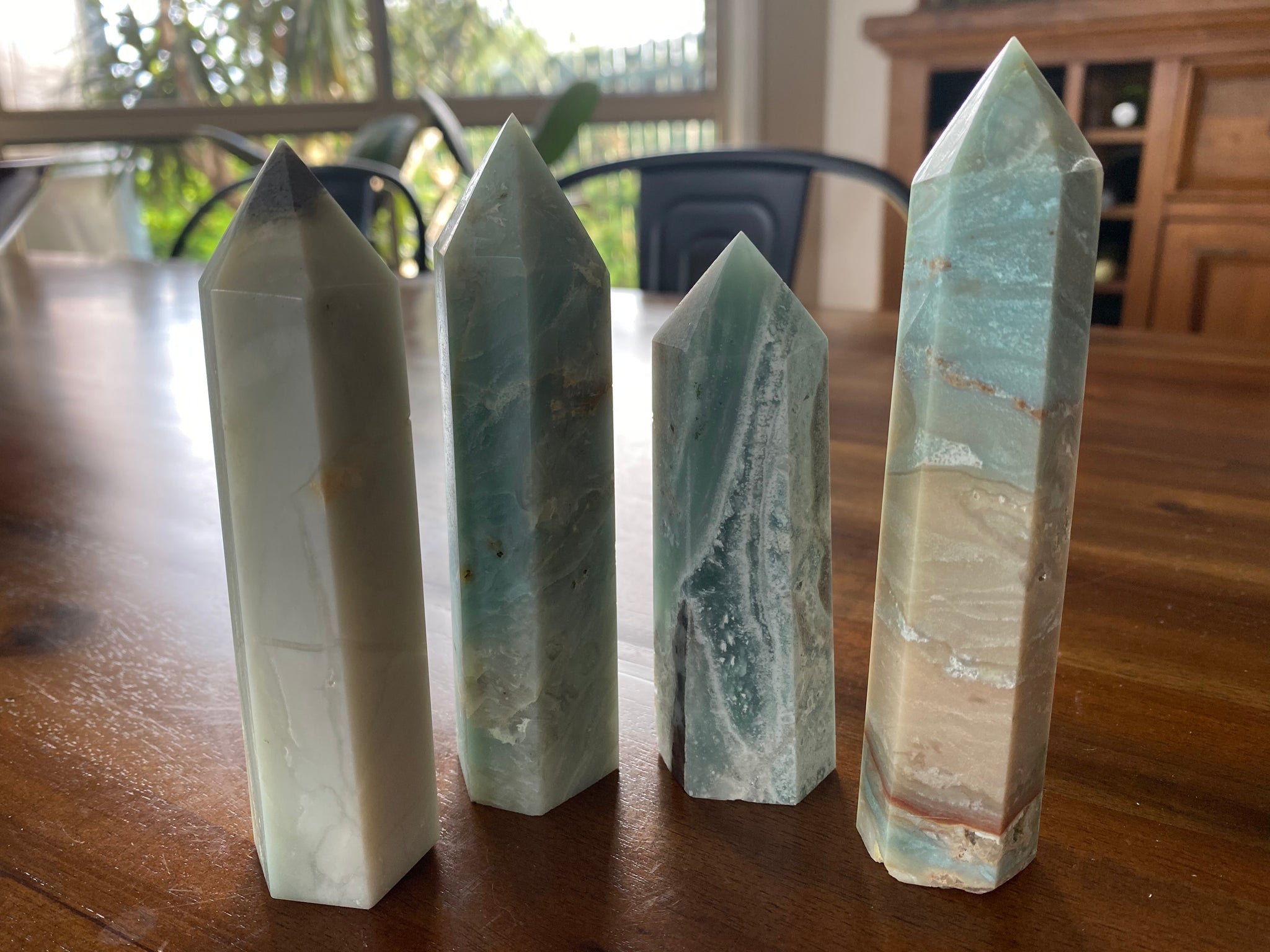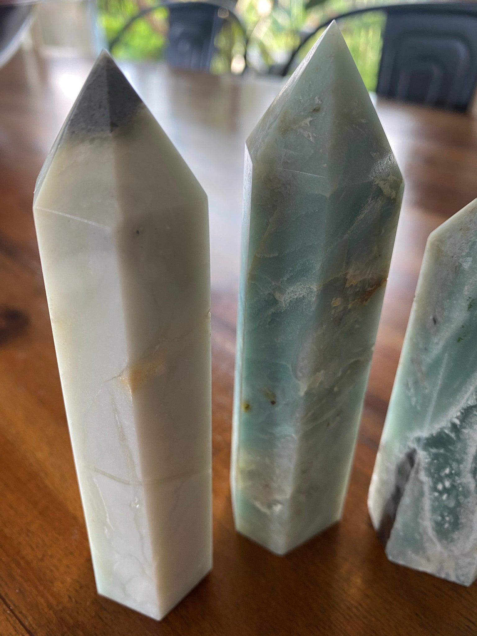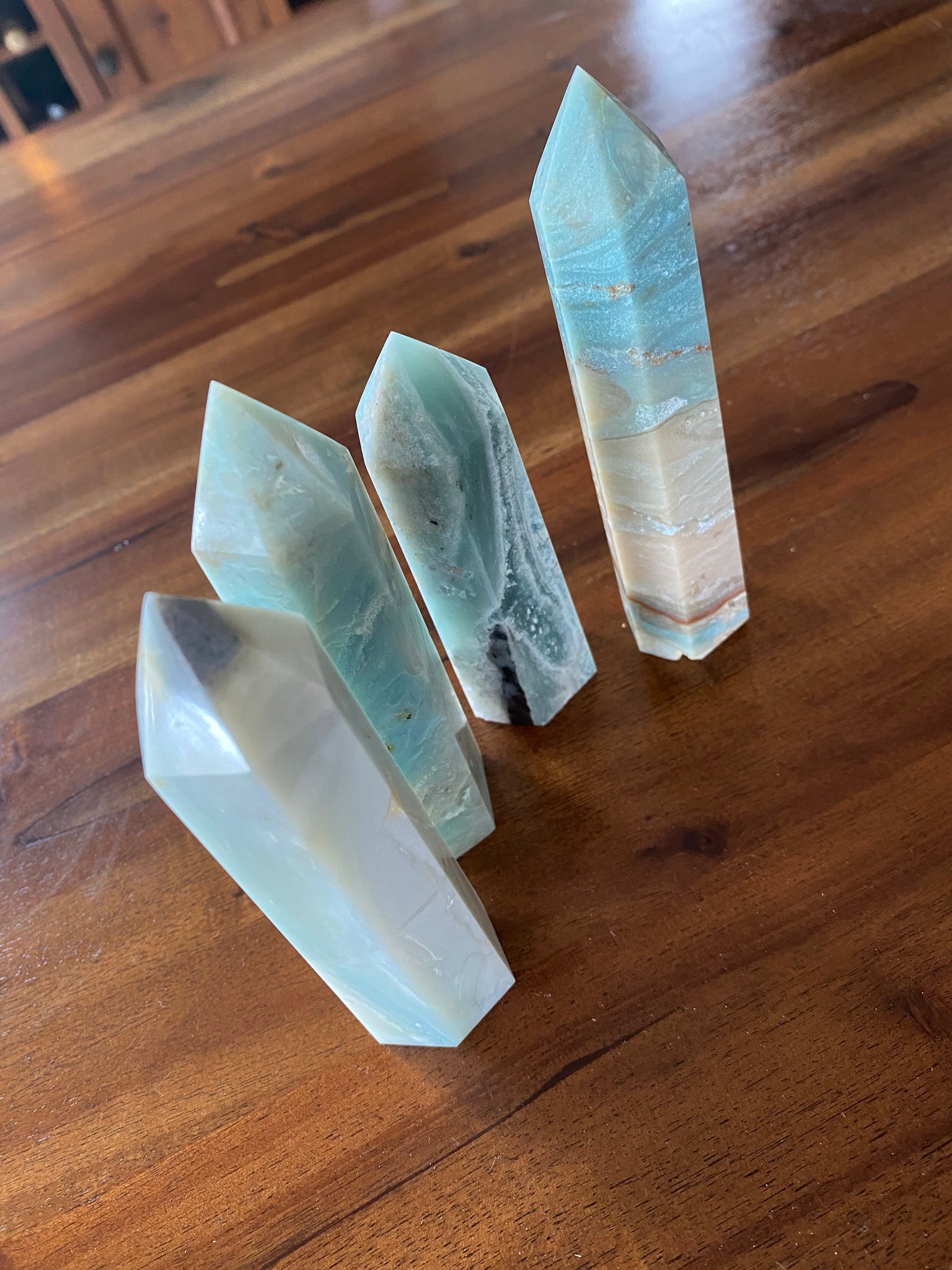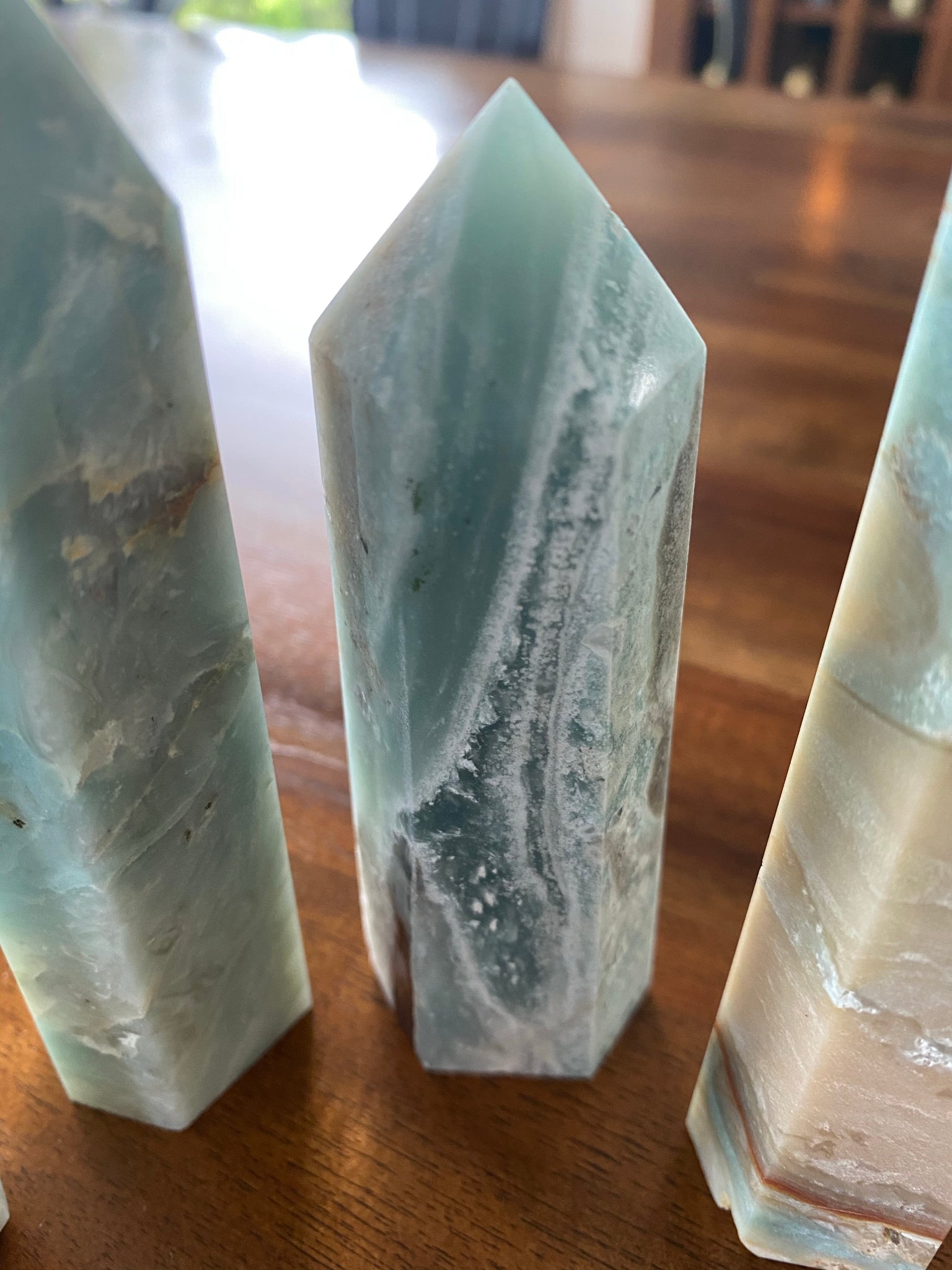 Stunning & Essential this Caribbean Calcite stands at approximately 12.5cm tall x 3.5cm wide , some a little taller or shorter, weighing between 161 to 185 grams each.