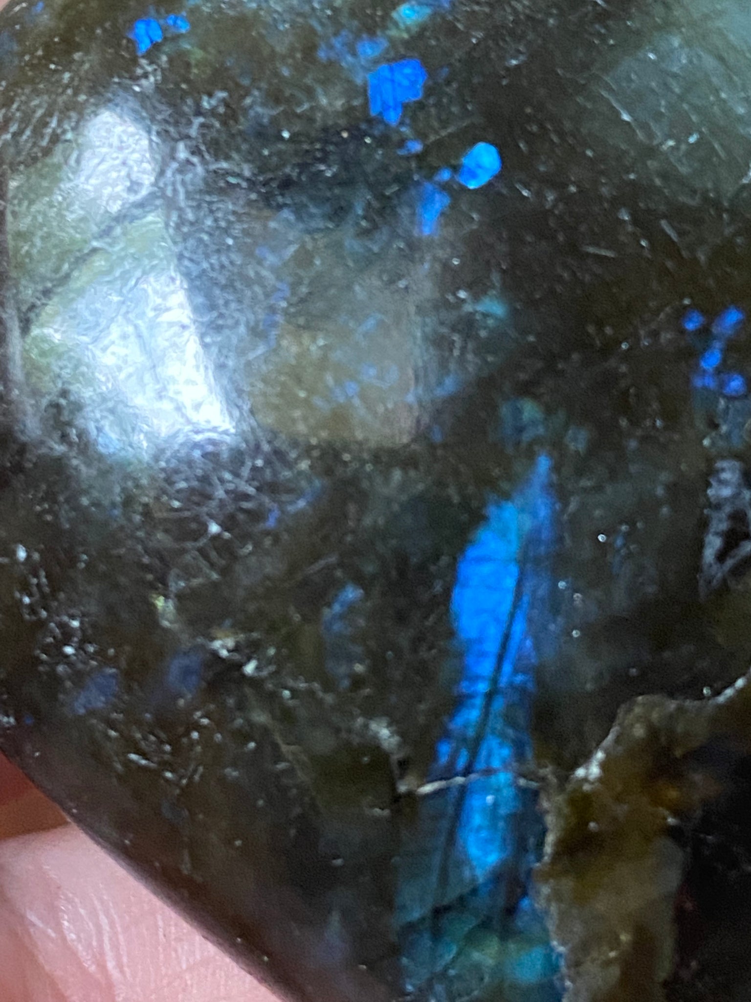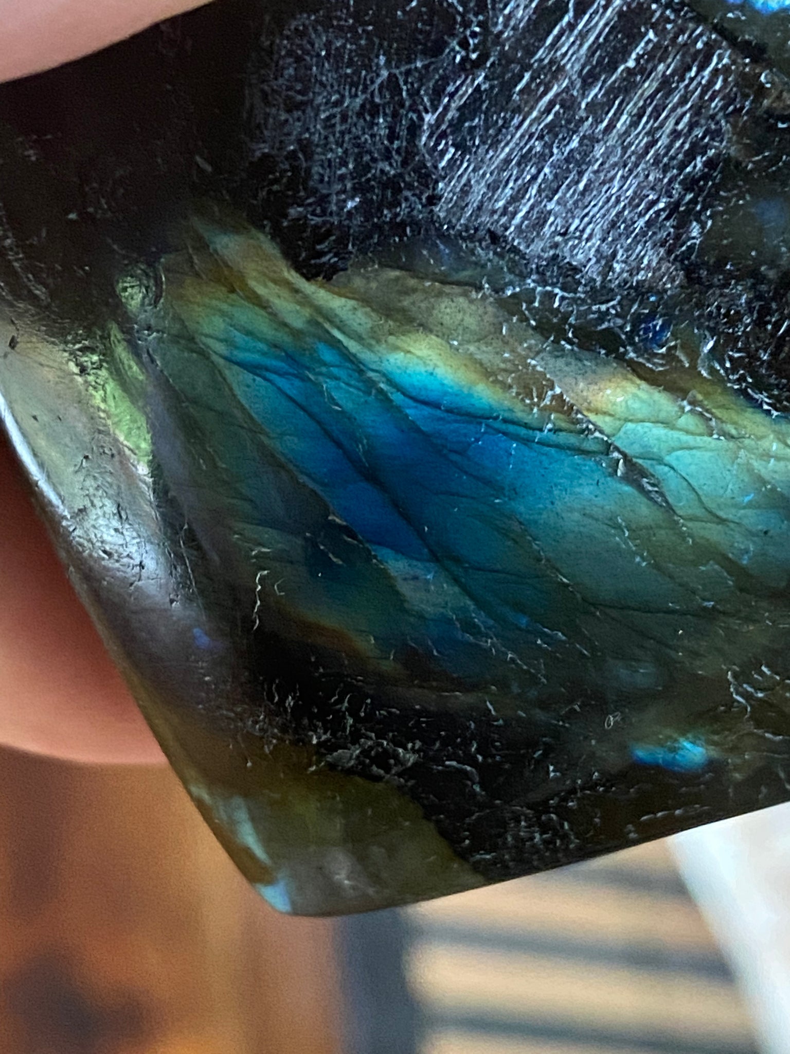 A multi colored Iridescent stone that changes colour with movement, representing freewill of those that choose to play with her vibration.
