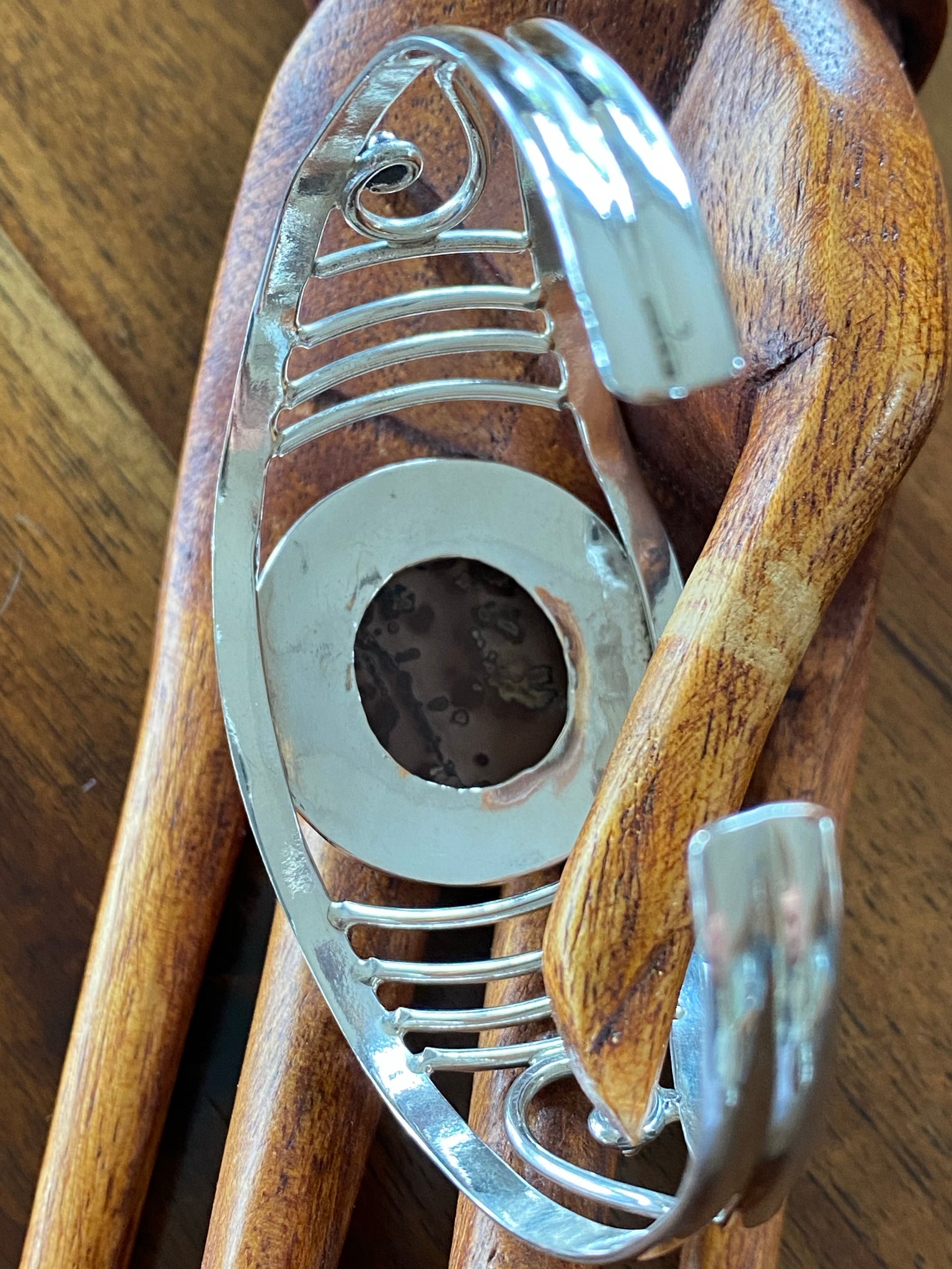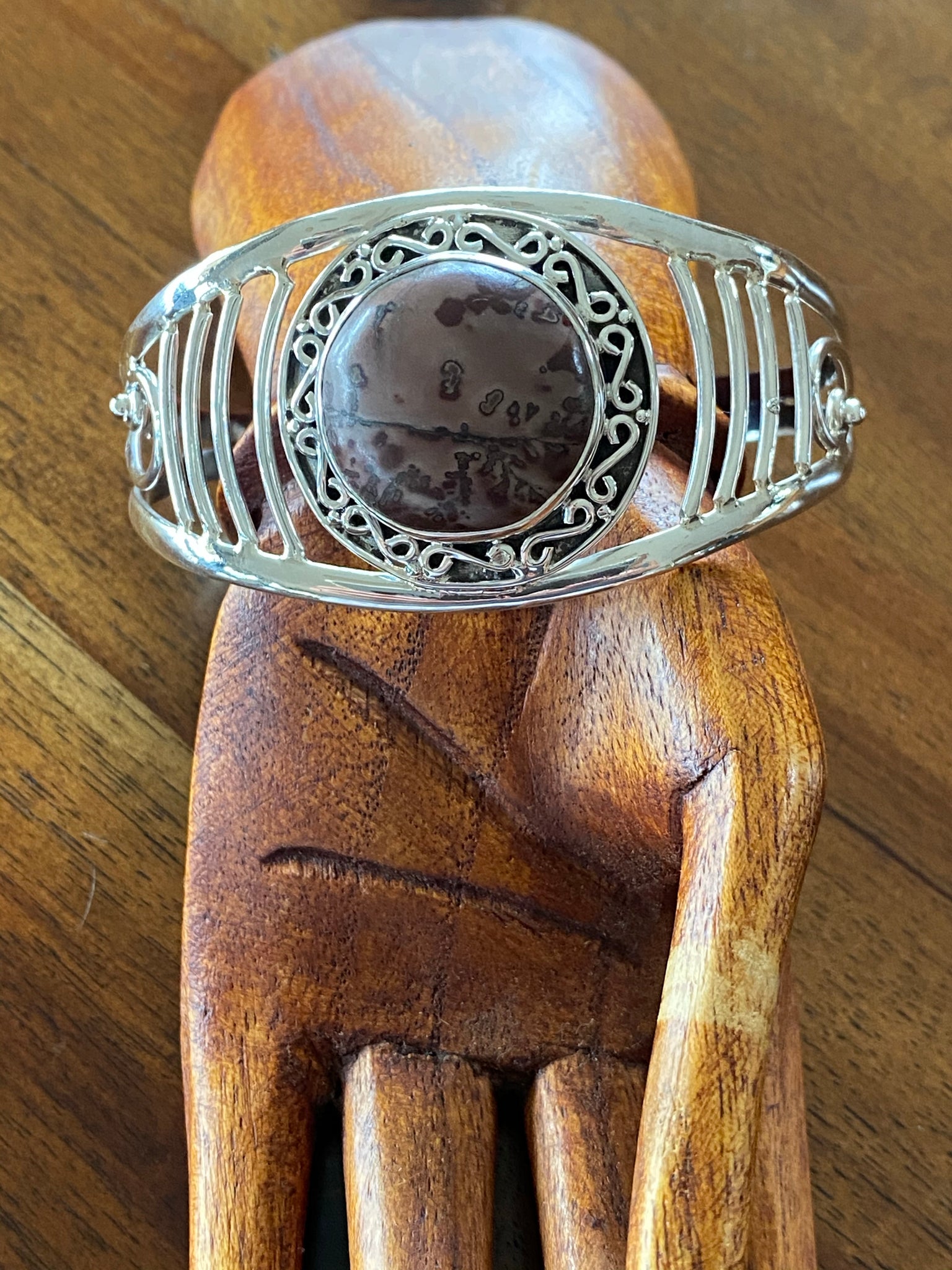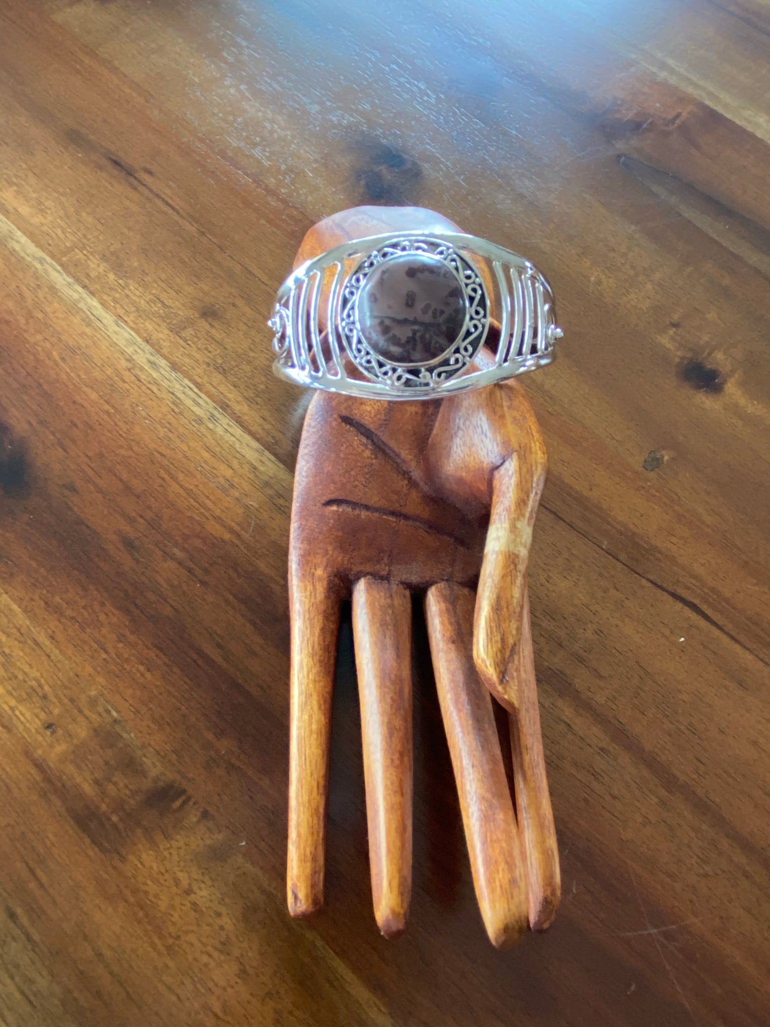 Set in sterling silver this Fossil Jasper has such a sense of calm about it. The size is adjustable to fit any wrist and was hand made in India.