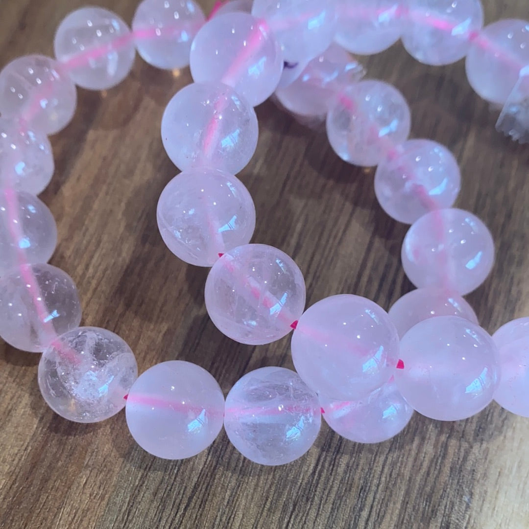 These 12mm Rose Quartz Beaded Bracelets where lovingly hand made by Kaz and Reiki blessed. Sometimes less is more, nothing but Rose Quartz