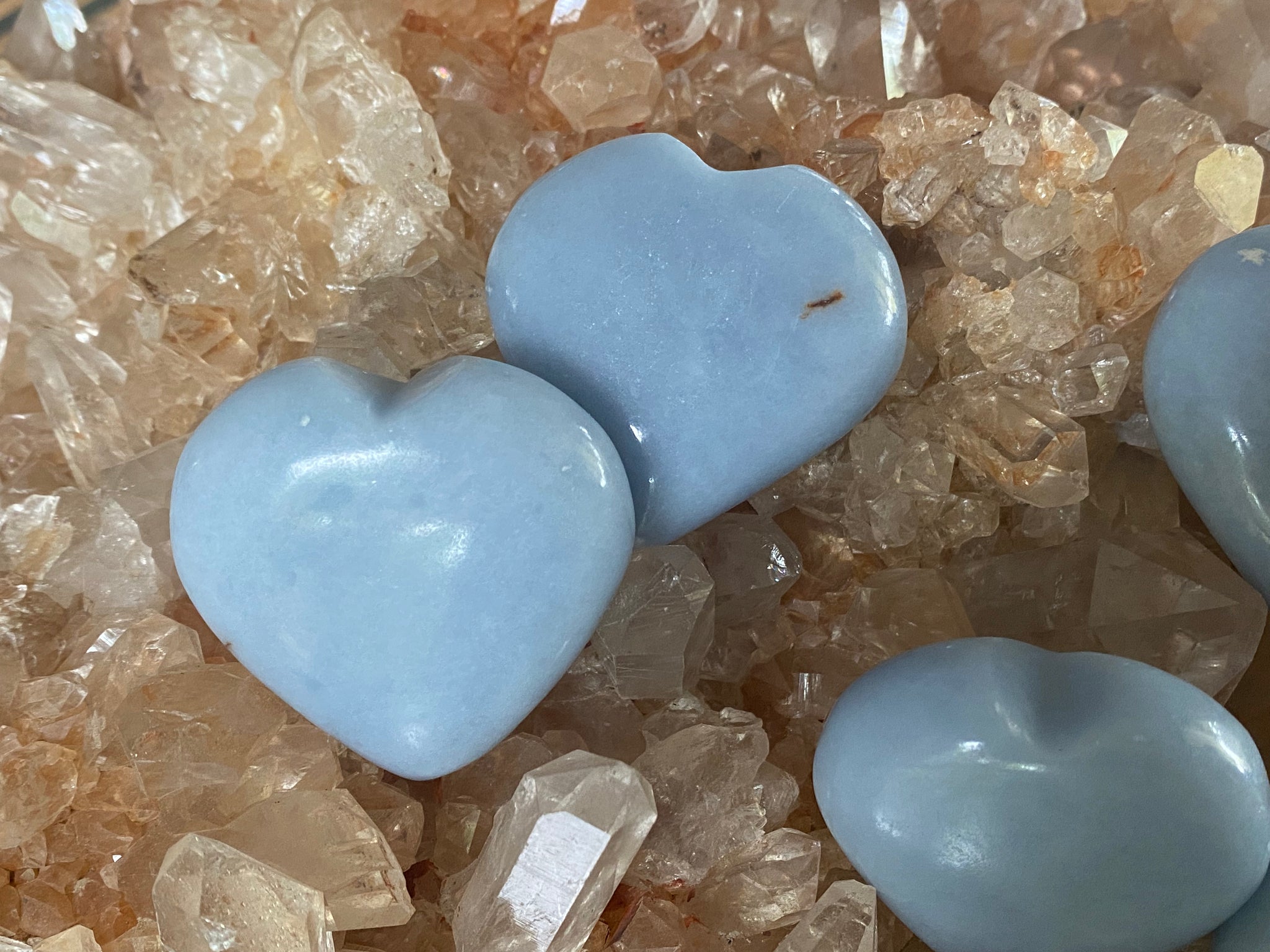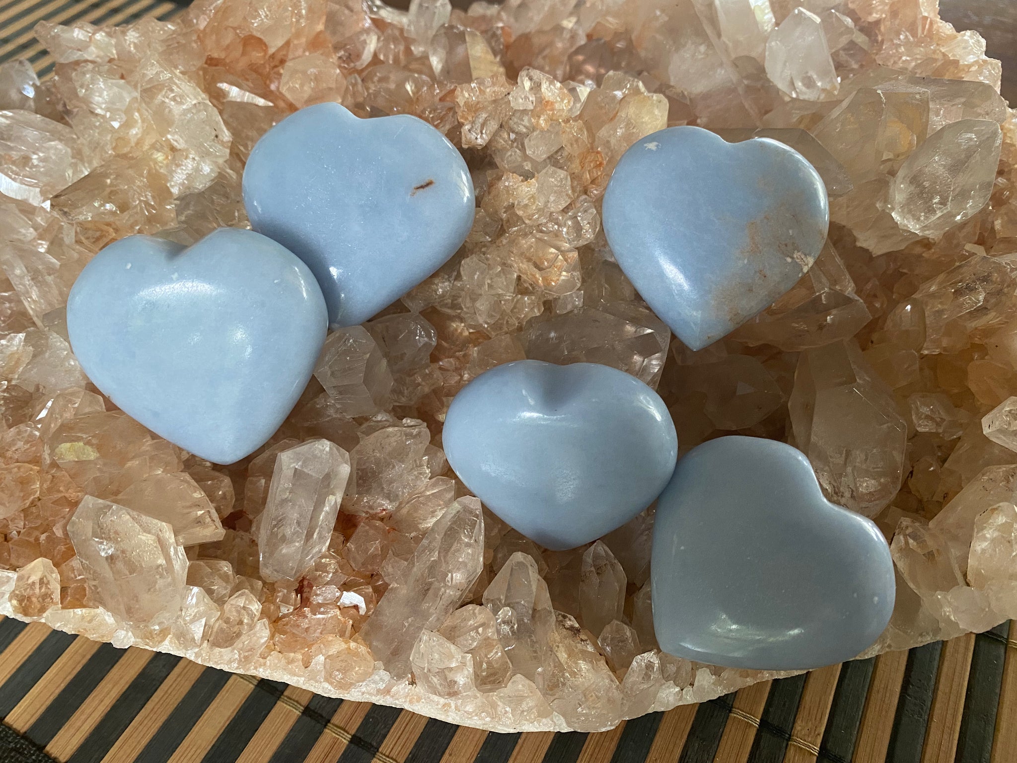 Brilliant Quality are these Angelite Hearts representing peace, connection and awareness.