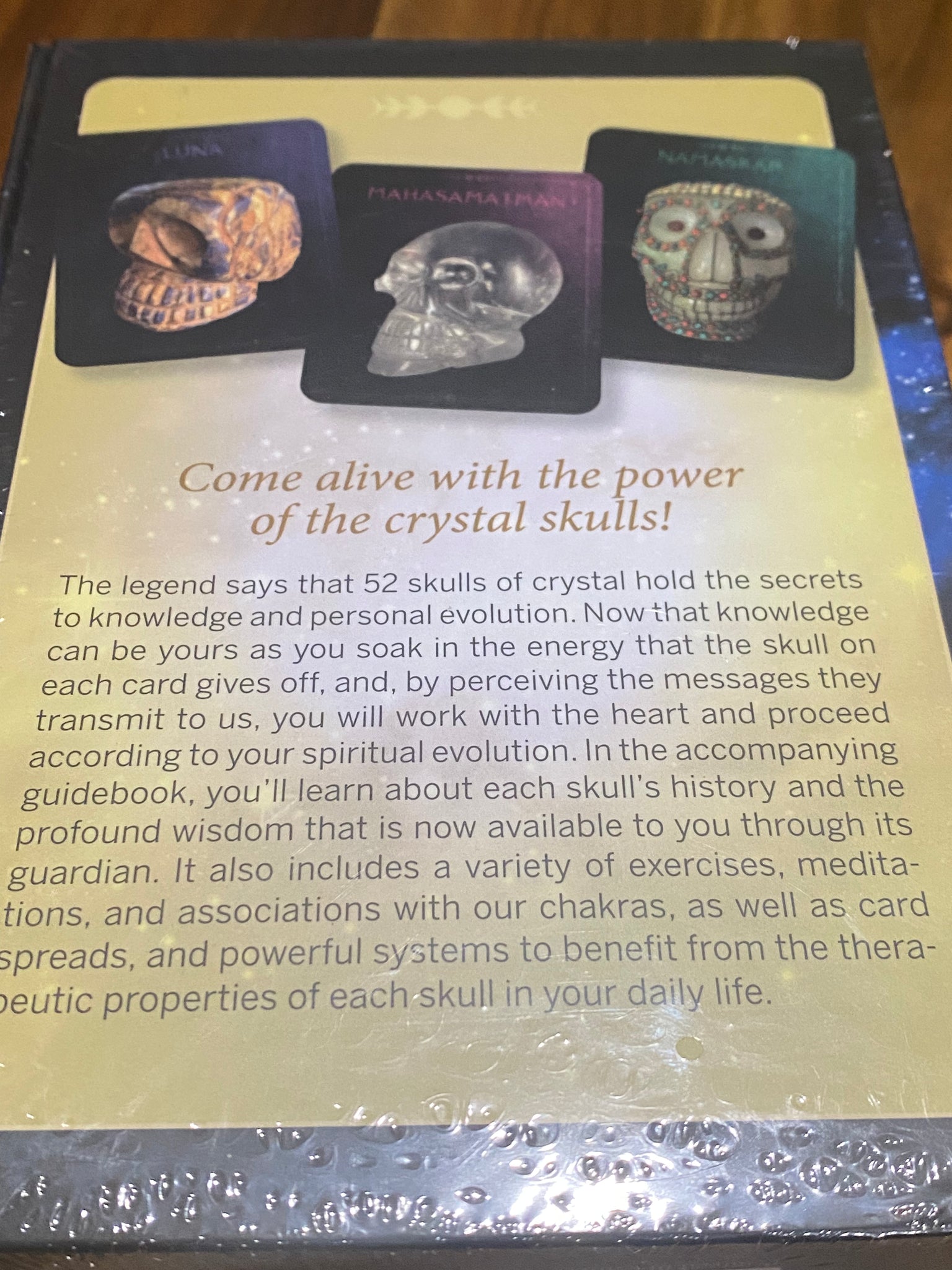 Come alive with the power of the crystal skulls! The legend, says that 52 skulls of crystal, hold the secret to knowledge and personal evolution. Now that knowledge can be yours, as you soak in the energy that the skull on each card gives off, and, by perceiving the messages they transmit to us, you will work with the heart, and proceed according to your spiritual evolution.