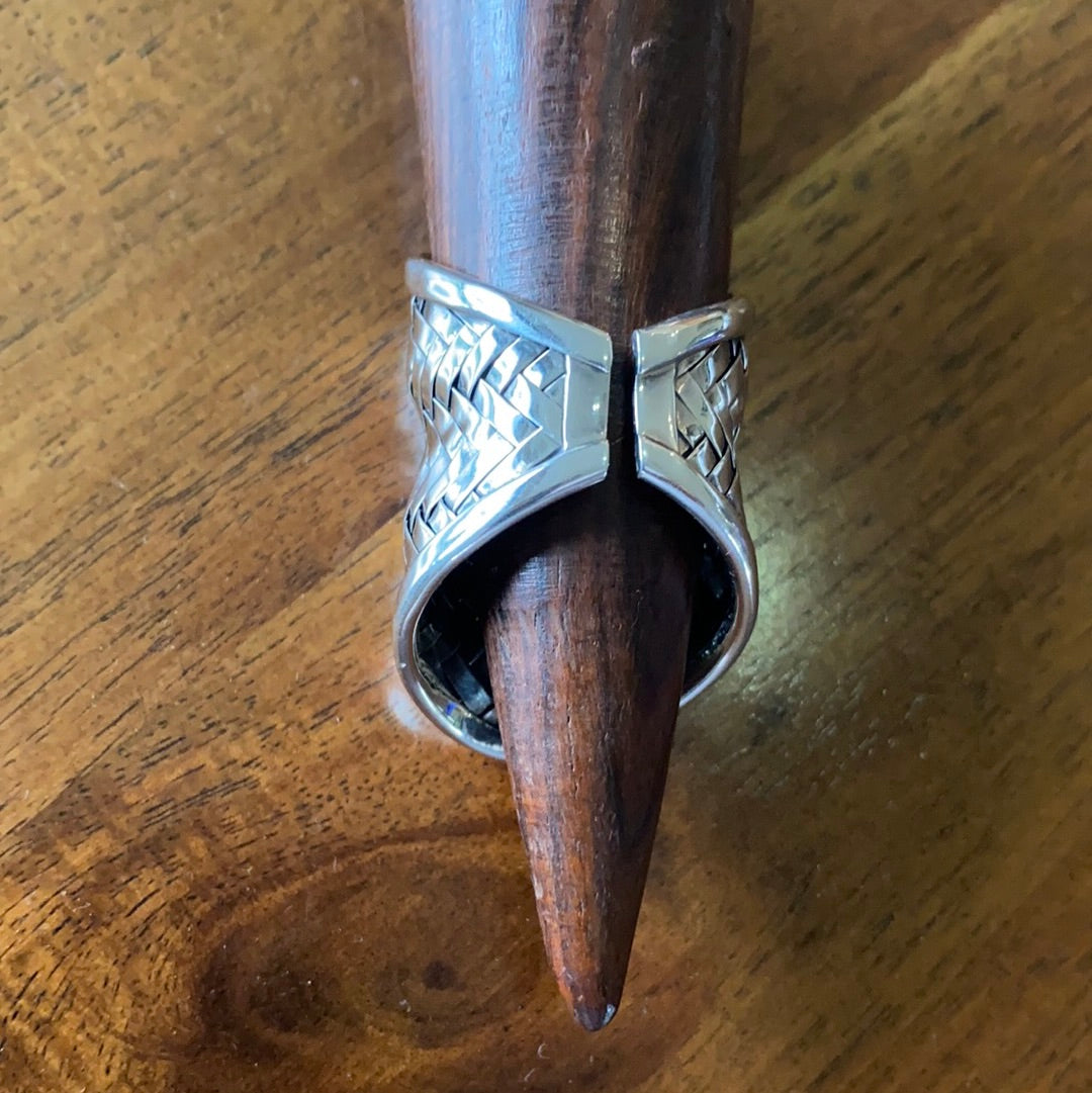 Woven and uniquely different is this Sterling Silver Adjustable Ring. Weighing 8.1 grams fitting all sizes. Measuring 4 cm in length.