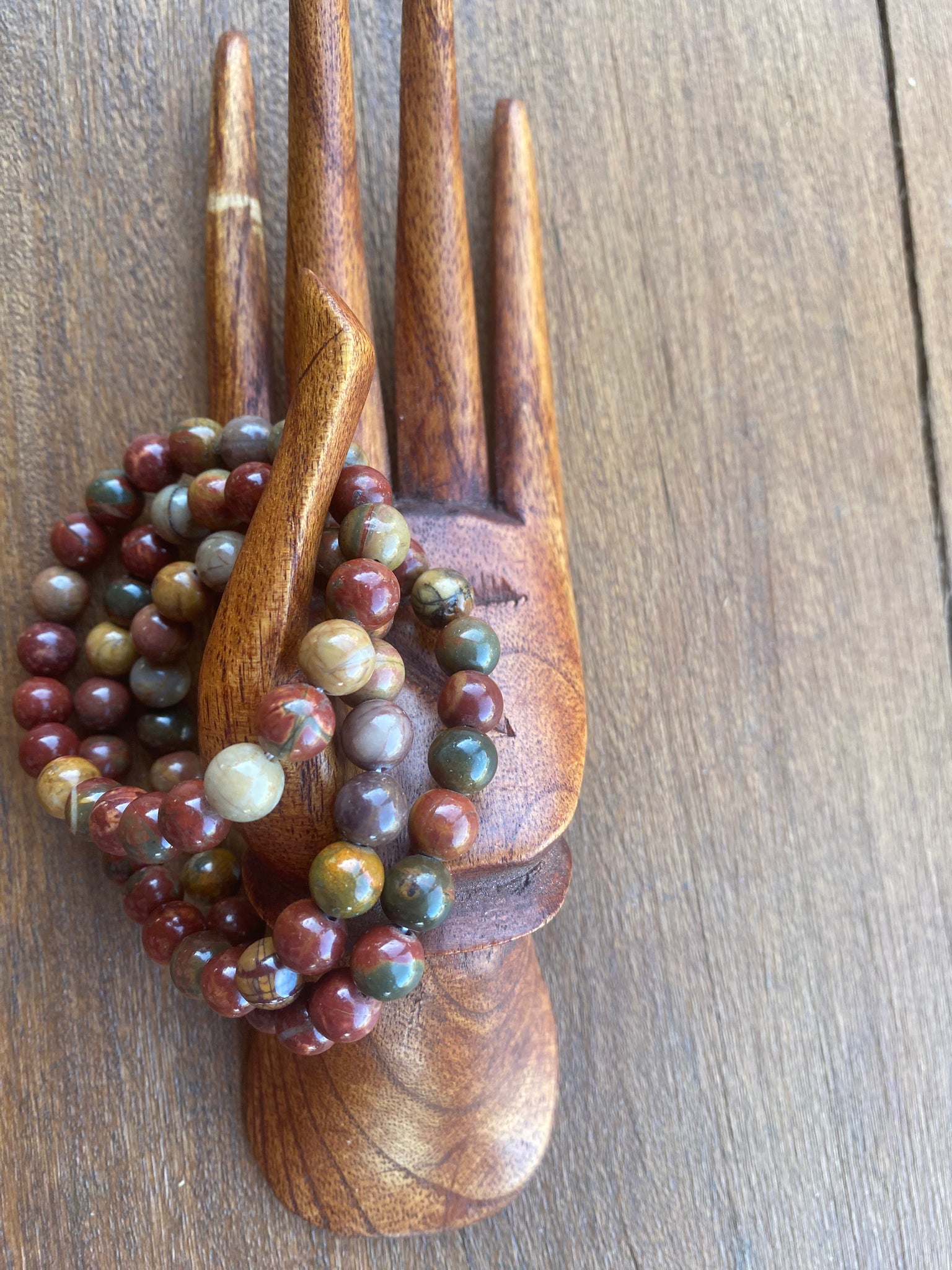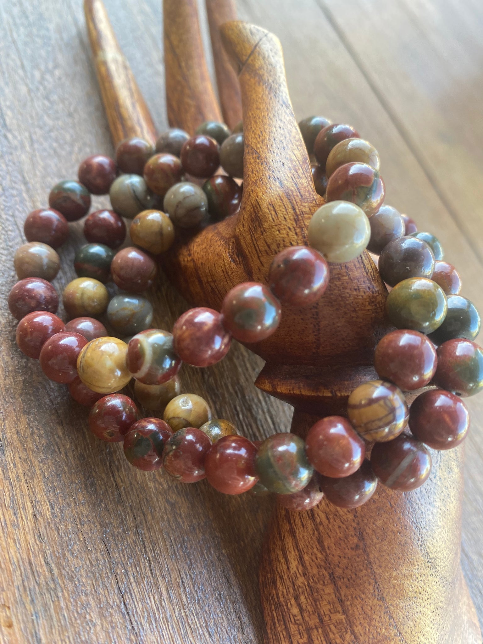 Picasso Jasper is a dynamic stone that unites courage and strength with love and gentleness. It helps us to feel safe and secure enough in our physical selves so that we may more fully explore our spiritual selves. Grounding, protective and supportive.